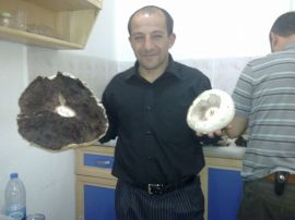 Rekseneli A.Kadir TAş tarafından Torulu ilçesi Arpalı köyünün yaylasında bulunan Kızıl mantarı büyüklüğü ile herkesi şaşırttı.Bu zaman kadar böyle büyüklükte bir kızıl mantarı görülmediğini belirten köylülerimiz mantarın büyüklüğü karşısında ise hayret ettiklerini belirttiler.Resmini yayınladığımız mantar daha sonra pişirilerek yenilmiştir.Bu yıl yağmurların çok yağması nedeni ile bol miktarda mantar olmuş ve köylülerimiz ile civar köylülerde bol miktarda mantar toplayarak ziyafet çekmişlerdir.Gurbetteki köylülerimizin yerine de bizler temsilen tüm mantarları yiyoruz.Gözleri arkada kalmasın. |