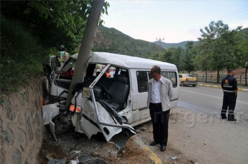 içerisinde üniversite öğrencileri bulunan minibüs elektrik direğine